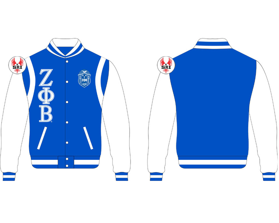 Chaqueta con letras para mujer, cuerpo de lana de Cachemira azul y mangas de cuero auténtico blanco, Zeta Phi Beta, ropa griega, chaqueta Varsity de hermandad