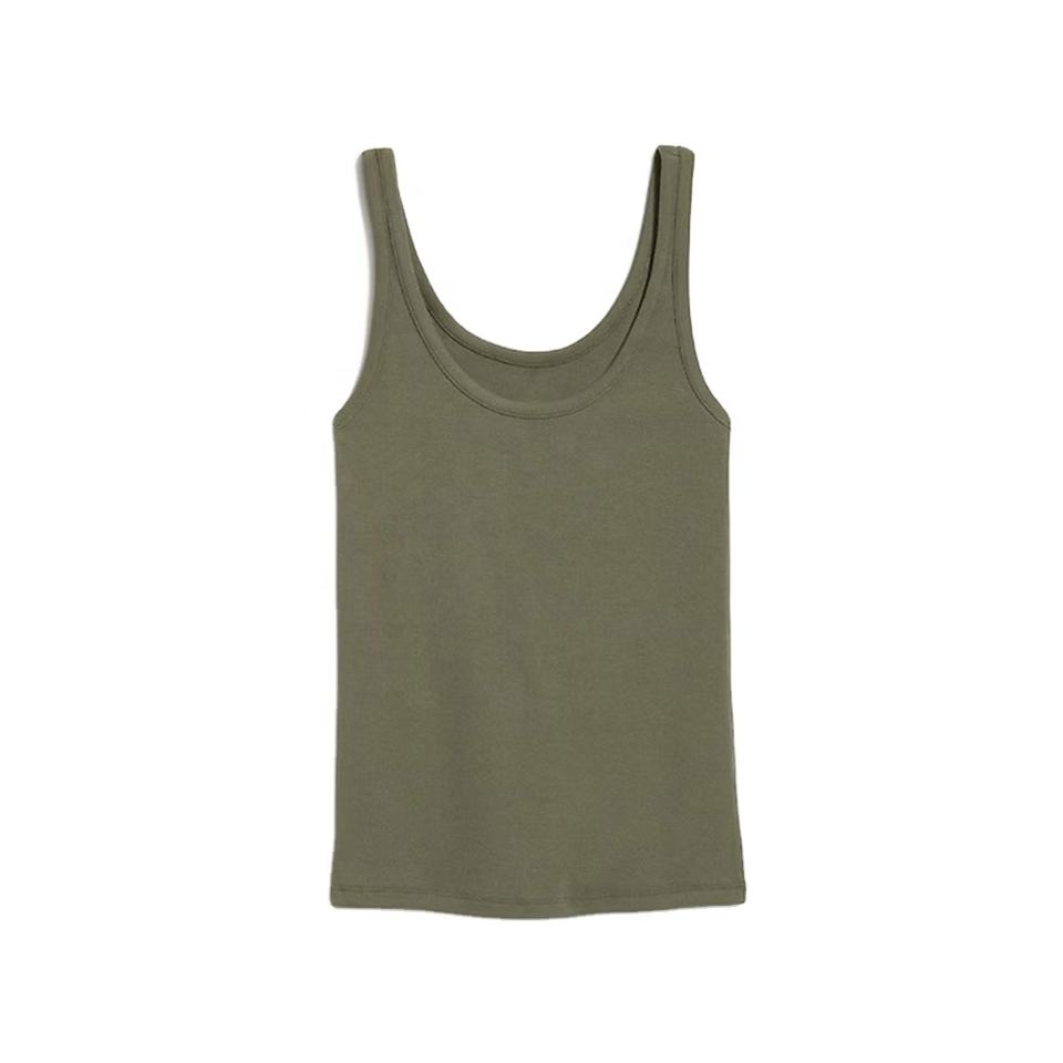 Nombre del producto:Camiseta sin mangas con cuello redondo verde oliva para mujer