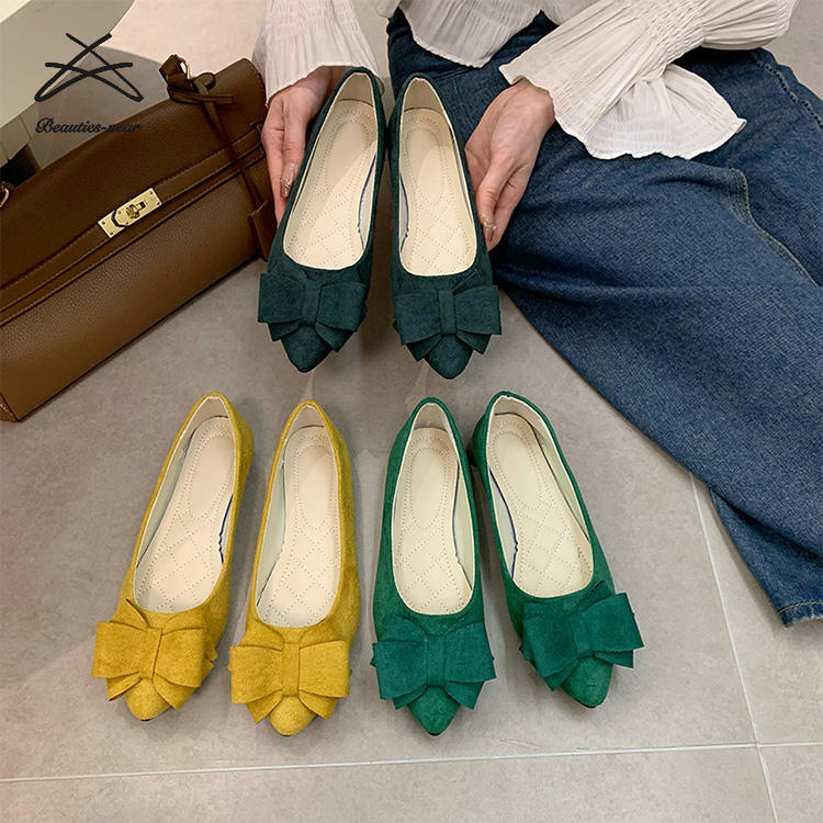 Womens Plus Size Ballet Pointed Toe Shoes Walking on Loafers Ladies Women Bow Knot Ballerinas Flat