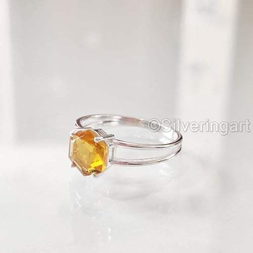 Anillo de Plata de Ley 925 con Citrino Natural, Piedra de Nacimiento de Noviembre, Anillo Apilable Pequeño y Delicado para Aniversario