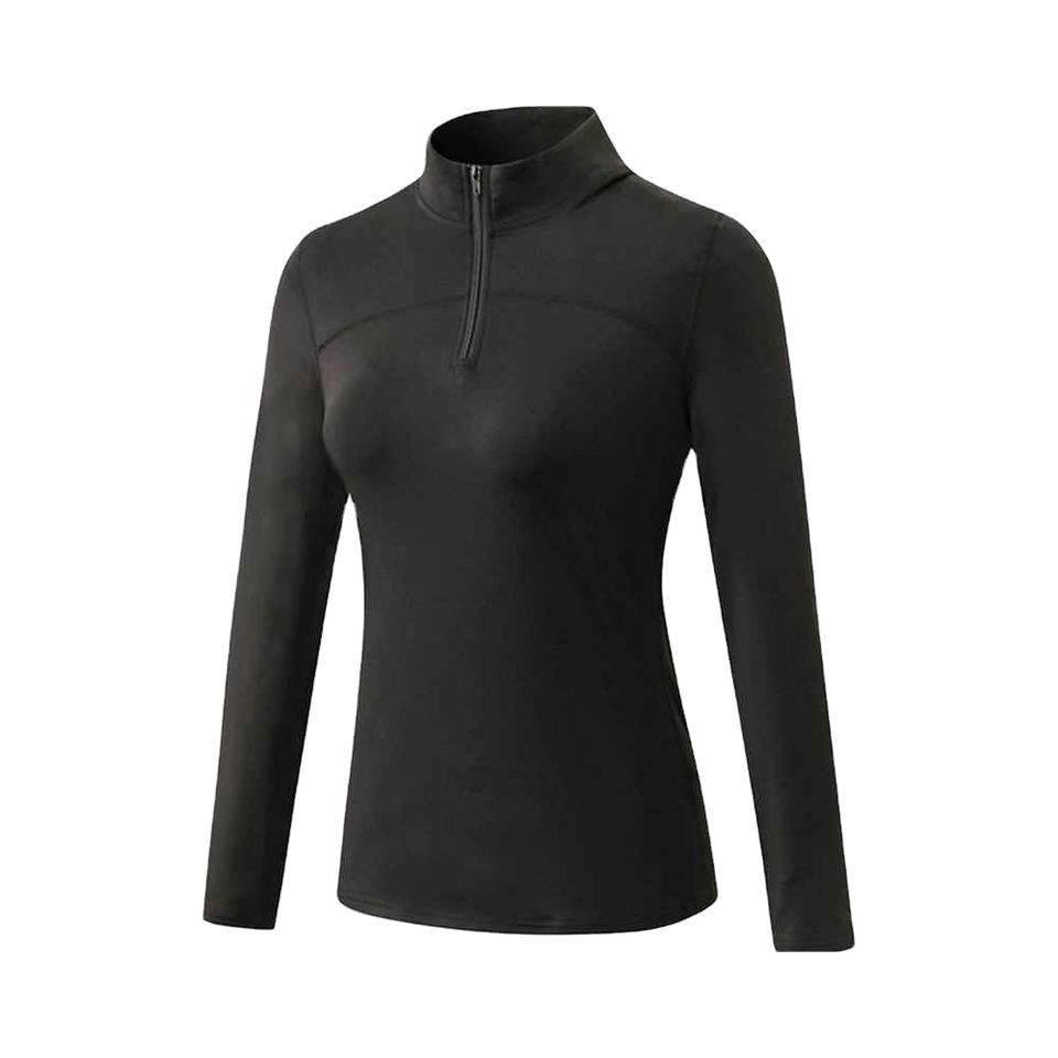 Camiseta de Manga Larga con Cierre de 1/4 para Mujer, Diseño Sólido, para Equitación, Secado Rápido, Absorción de Sudor