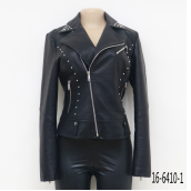 Chaqueta de piel sintética de gran tamaño con estilo para mujer, cuello con capucha, patrón sólido, logotipo personalizado, temporada de otoño, diseño de PU, detalle con tachuelas