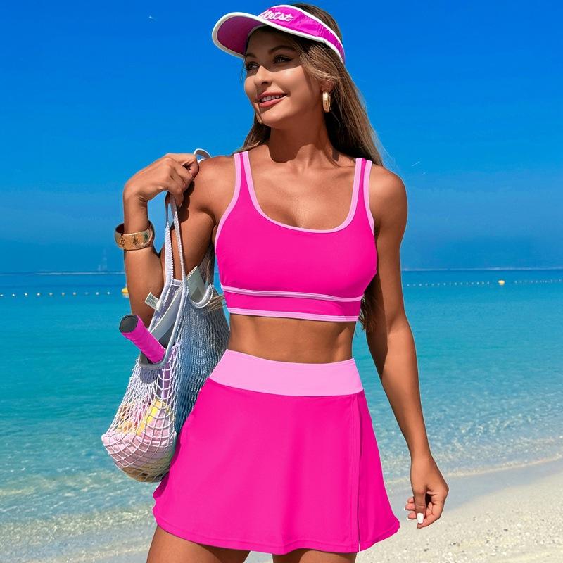 Bikini de Dos Piezas para Mujer, Traje de Baño de Secado Rápido con Falda Deportiva, Venta al por Mayor