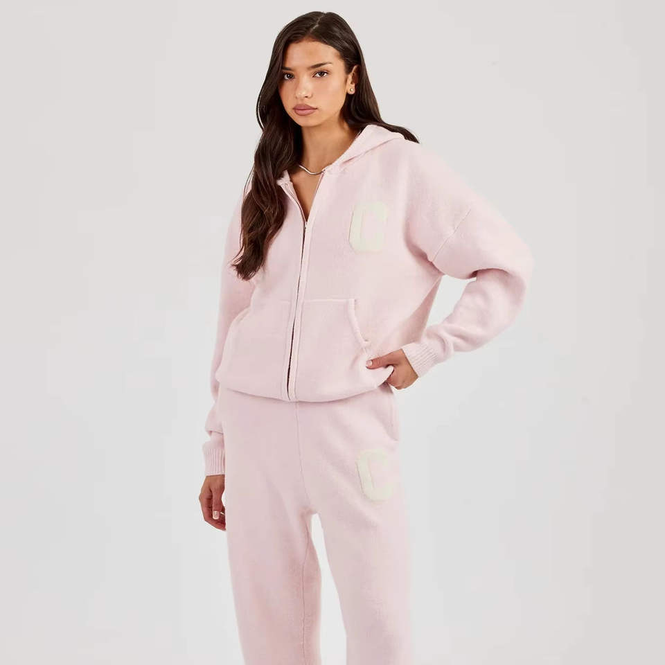 Conjunto Deportivo de Dos Piezas para Mujer, Sudadera con Cierre Completo y Pantalones, Ecológico, Sólido, Informal, Cómodo y Combinado