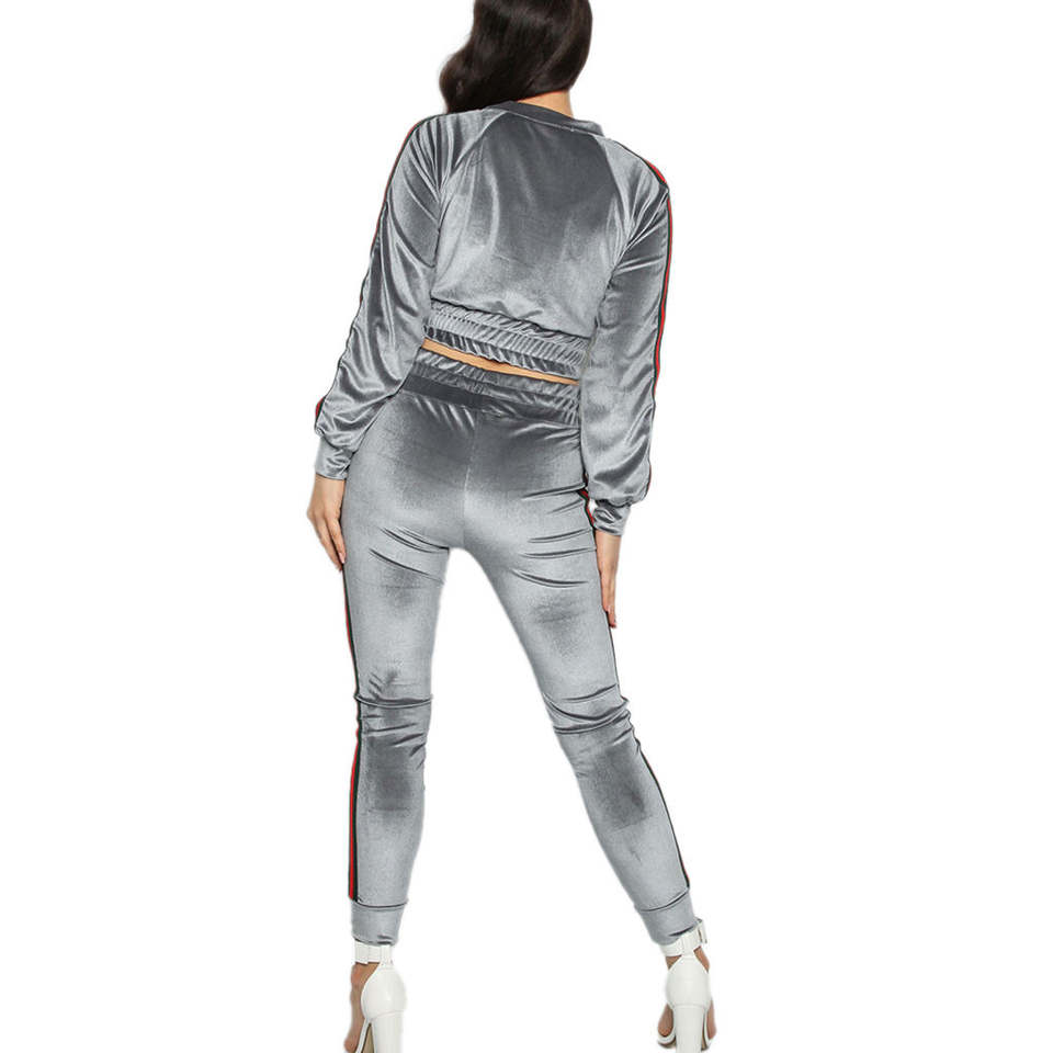 Conjunto Deportivo de Terciopelo para Mujer, Dos Piezas, Top Corto con Capucha y Cremallera de Manga Larga, Pantalones Acampanados