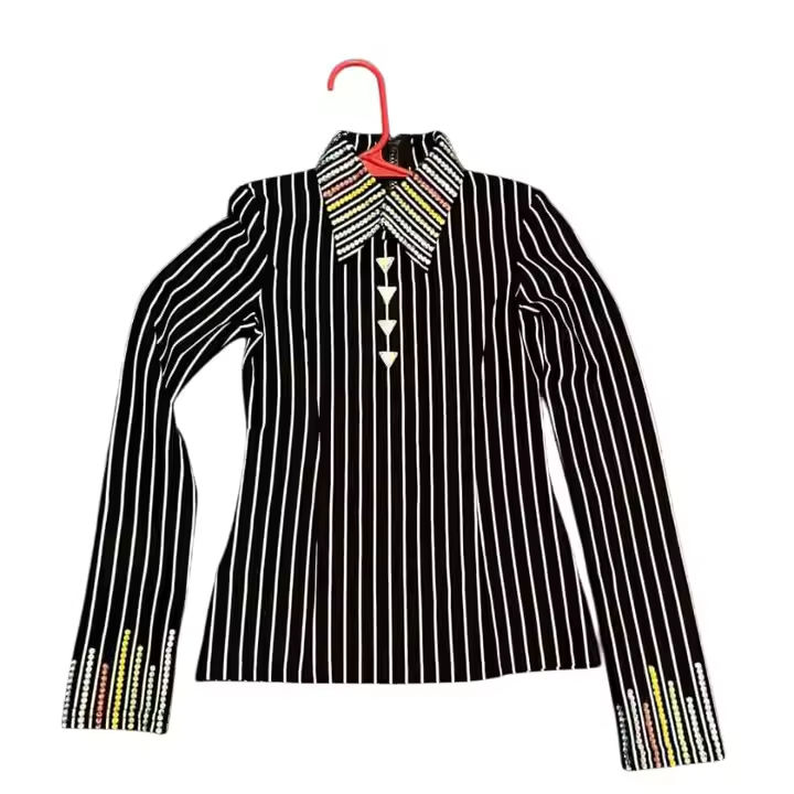 Camiseta de espectáculo occidental para mujer, ropa de competición ecuestre adornada con cristal