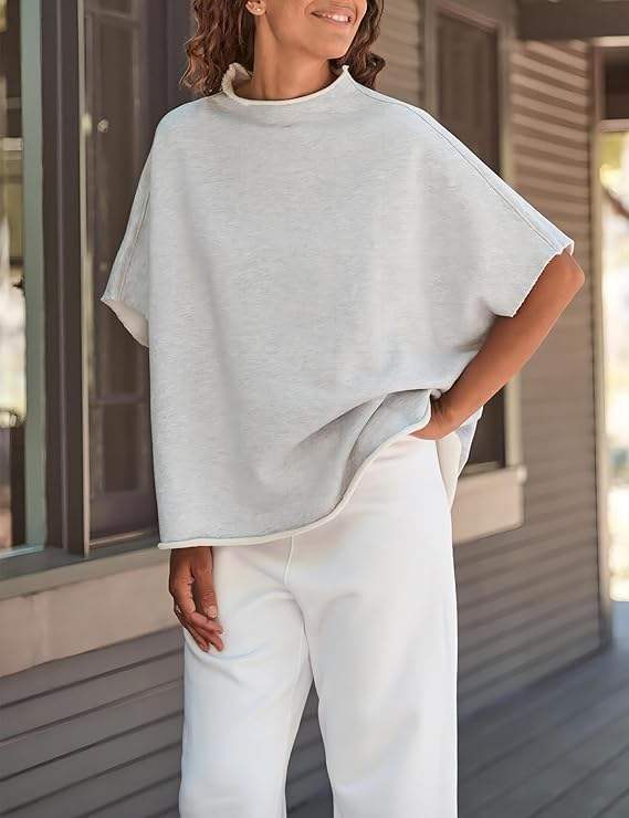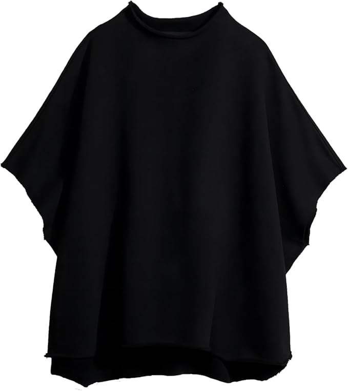 Tops de cuello embudo de gran tamaño para mujer 3/4 manga de murciélago Capelet Casual Travel Pullover sudaderas