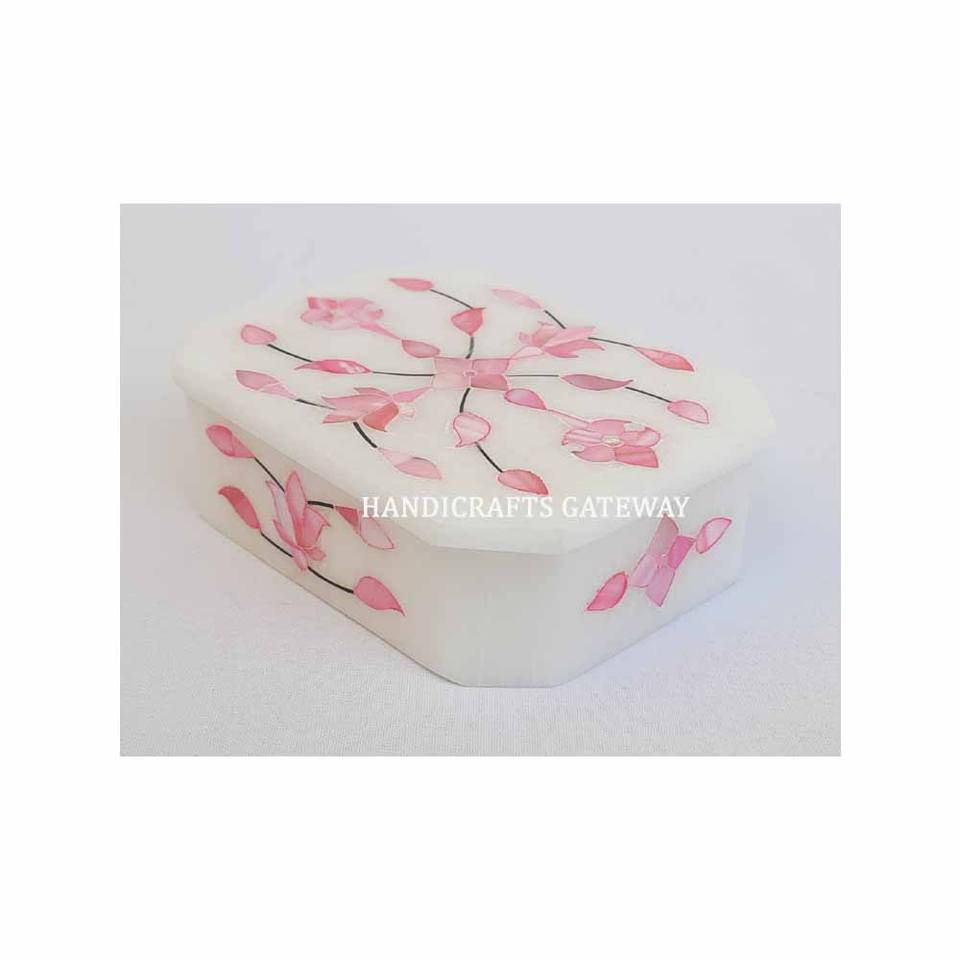 Maravilloso diseño puro hecho a mano mármol blanco azul madre de perla incrustaciones trabajo Rectangular joyería caja de regalo para decoración del hogar