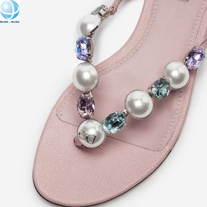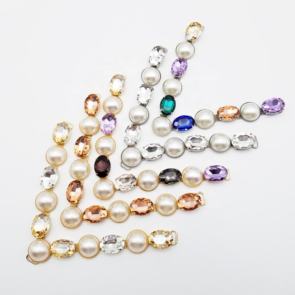 Cadenas de Zapatos con Apliques de Perlas en Forma de V, Cadena de Cristal para Decoración de Chanclas