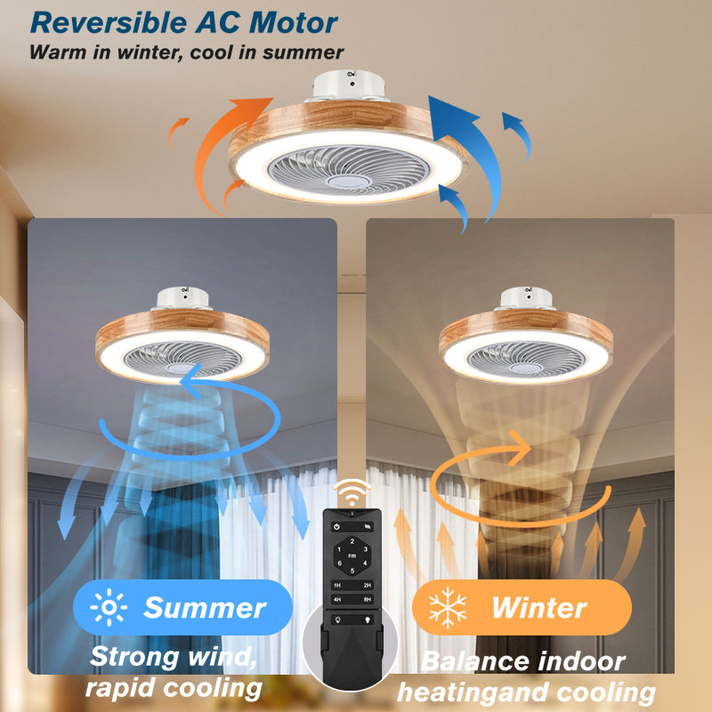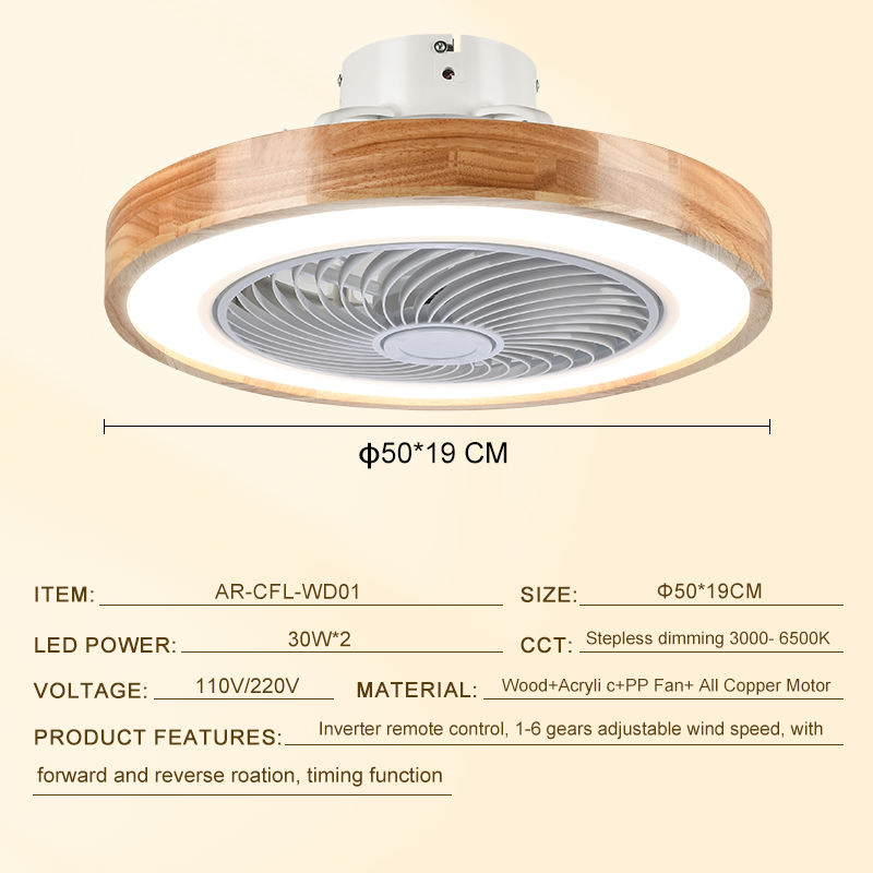 Ventiladores de Techo de Madera de 19.7'' con Luces, Control Remoto, Iluminación LED Moderna de 3 Colores Regulables, 6 Velocidades, Motor de Cobre