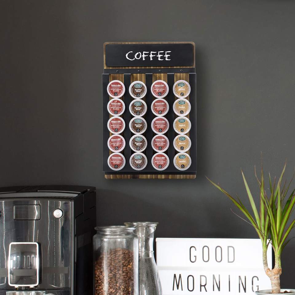 Nombre del producto:Organizador de Cápsulas de Café de Madera Negra para Montaje en Pared