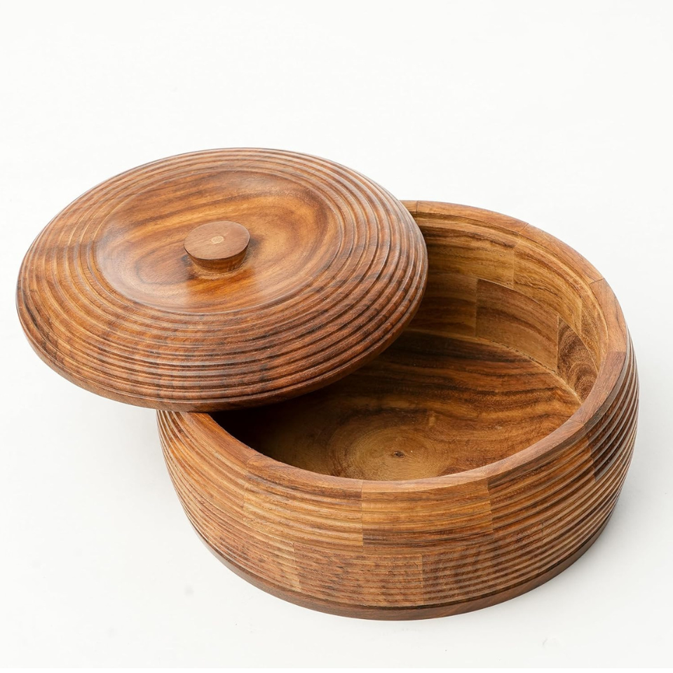 Caja de Madera para Chapati, Contenedor de Almacenamiento de Roti de Madera de Acacia, Cesta Marrón para Servir Roti, Utensilios de Cocina