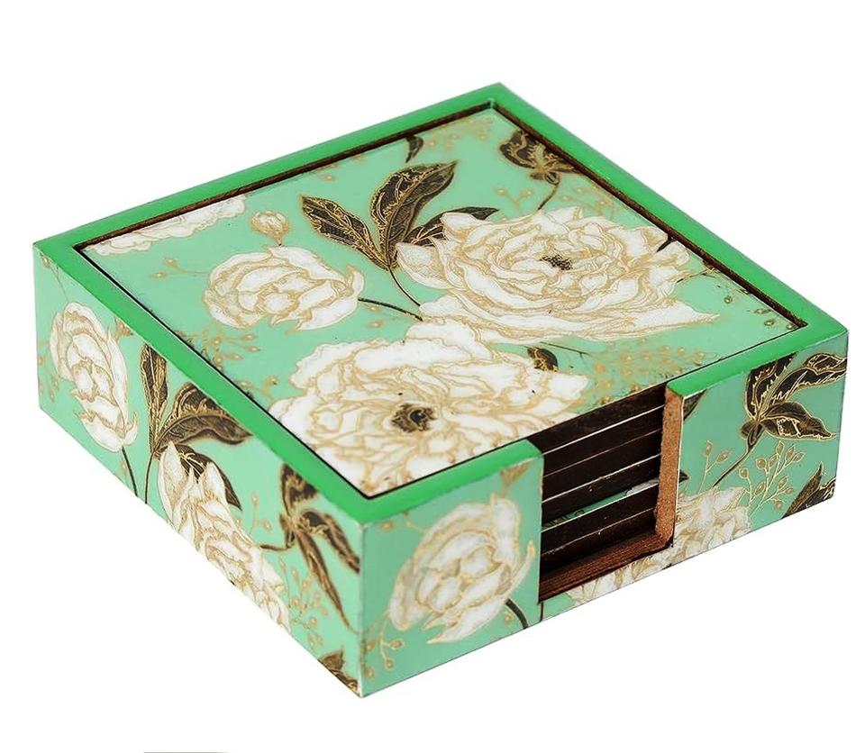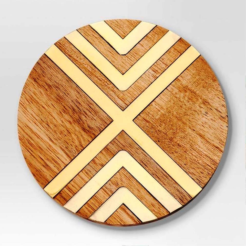 Product name:Bone And Brass Inlay Wood Coaster