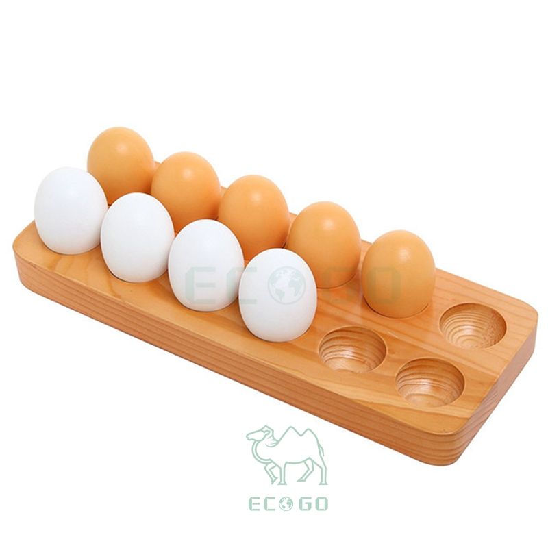 Soporte de madera para huevos, bandeja de almacenamiento de huevos de bambú con capacidad para 12 huevos, organizador de encimera de madera maciza para Cocina