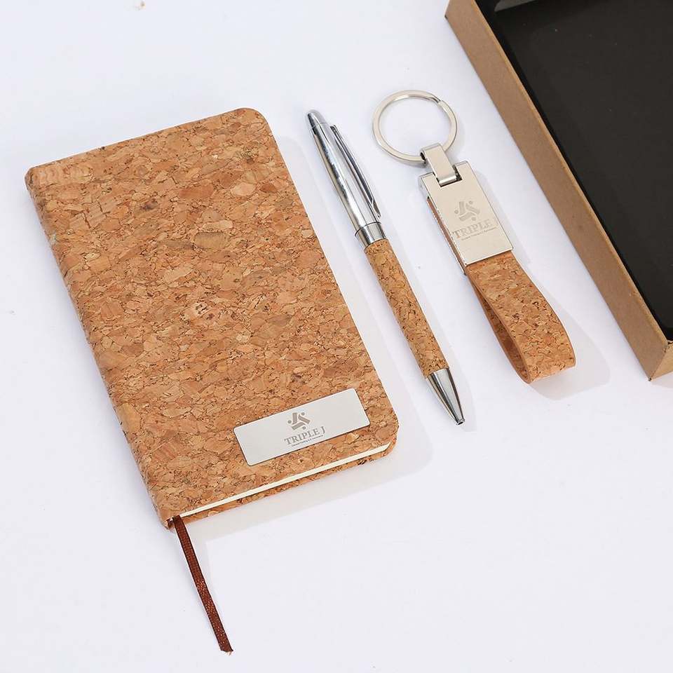 Set de Regalo de Cuaderno y Bolígrafo de Cuero PU con Diseño de Madera - Regalos Corporativos Ecológicos con Diversos Diseños e Impresión Digital