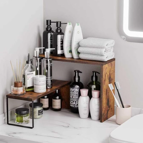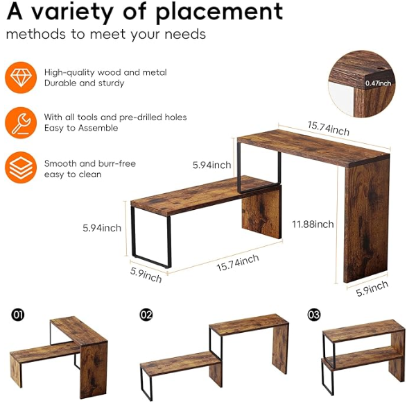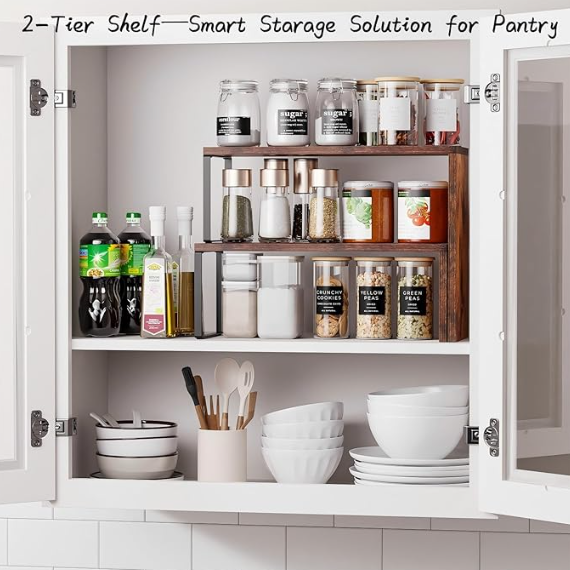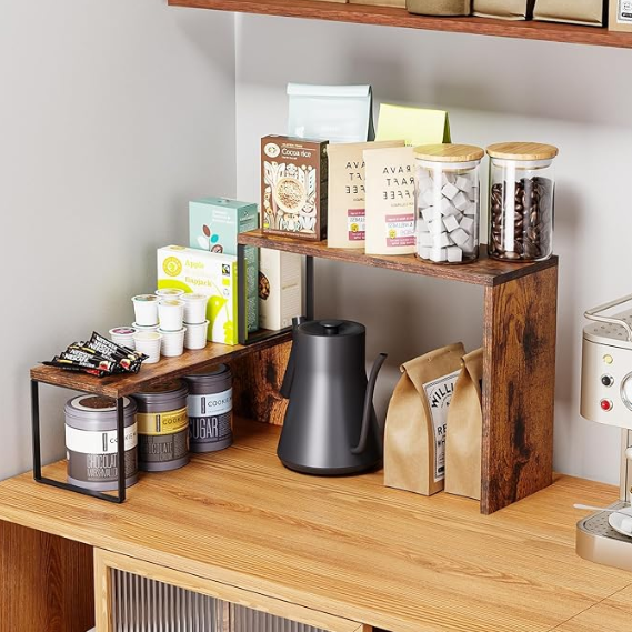 Organizador de Encimera de Cocina de Madera - Estantes Esquineros Apilables para Especias, Despensa y Almacenamiento de Cafetería