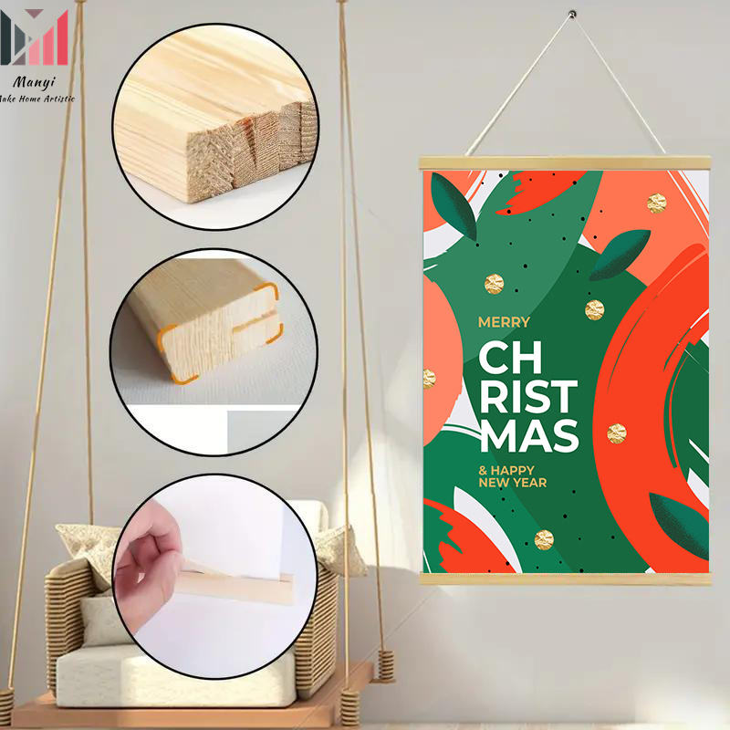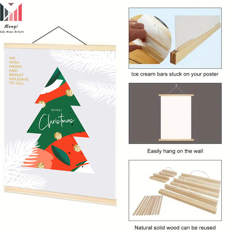 Colgador de marco de póster de madera para carteles y cuadro sobre lienzo para pared imprimible de Navidad e impresión navideña de vacaciones para decoración de azada