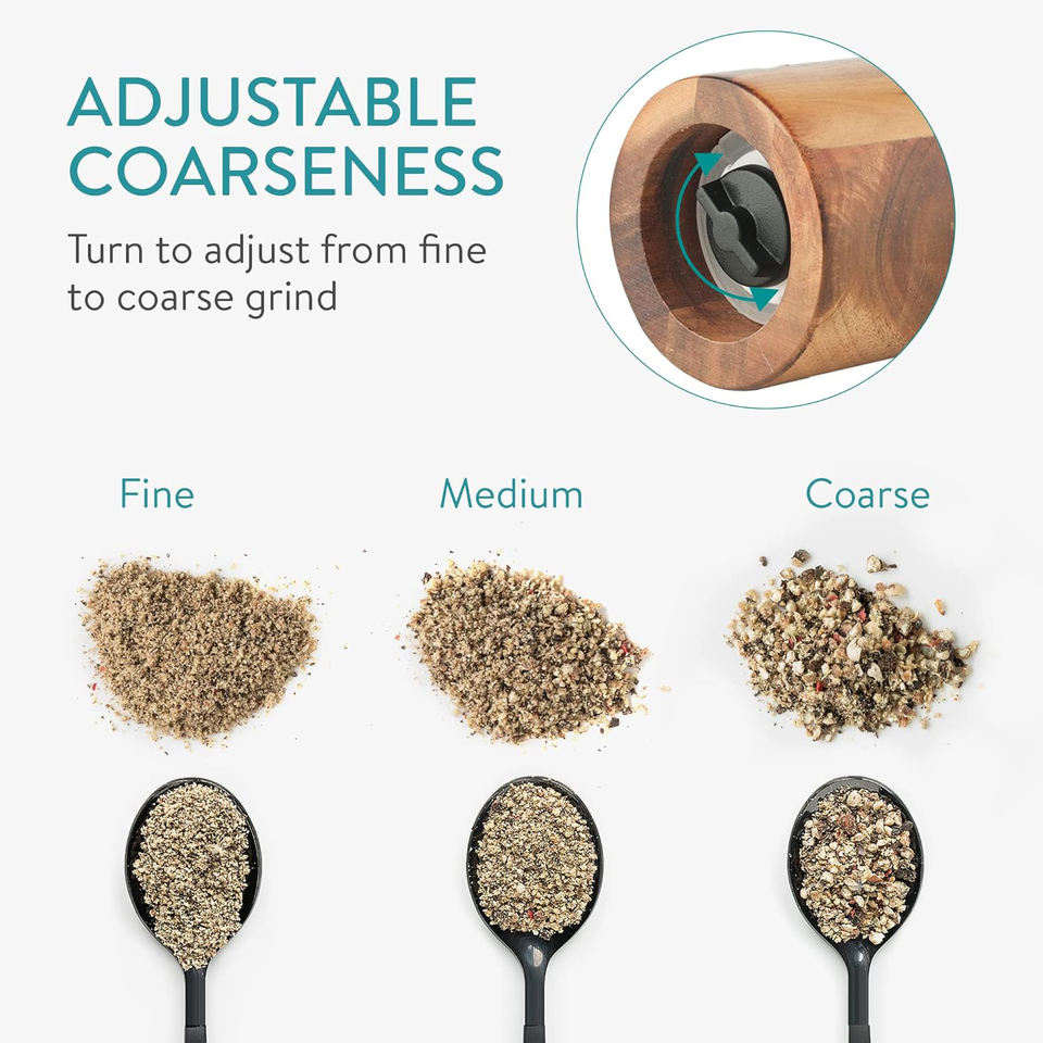 Nombre del Producto:Juego de Molinillos de Madera para Sal y Pimienta Ajustables