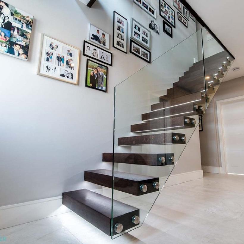 Escalera de madera con barandilla de vidrio Escalera flotante recta hecha en China para interiores