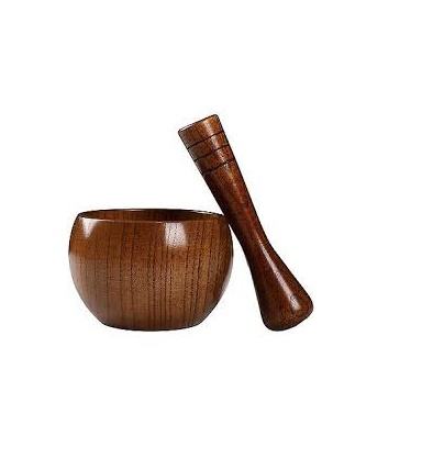 Molinillo de madera para mortero y herramienta de cocina, triturador de granito blanco de madera, mortero, tazón de molienda, prensa de ajo