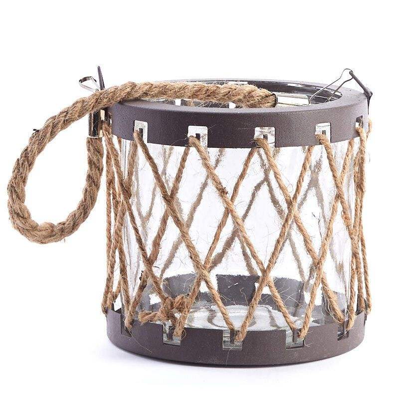 Farol de madera y cuerda hecho a mano, diseño rústico, portavelas colgante para mesa, adorno decorativo para el hogar