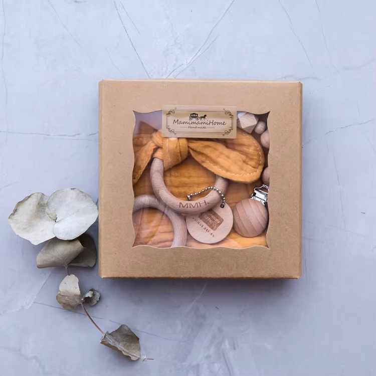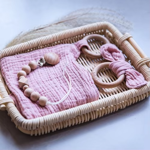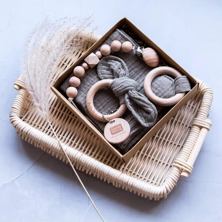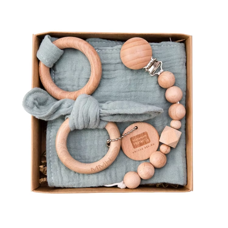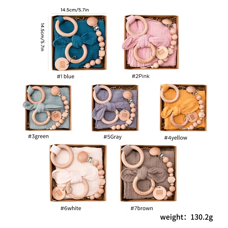 Juego de tela de algodón de tres piezas para chupete con Orejas de conejo para dentición de bebé de madera