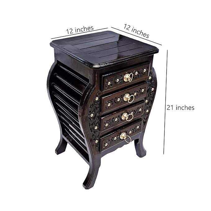 Mesita de noche moderna de madera maciza de 4 cajones con asas de latón, taburete de extremo de madera y almacenamiento para uso en dormitorio, muebles para el hogar