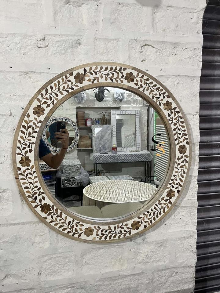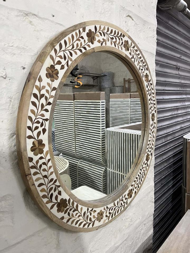 Espejo Redondo de Pared con Incrustaciones de Hueso Estilo Animal Ecológico con Cristal, Decoración para el Hogar y la Oficina de Crescent Crafts
