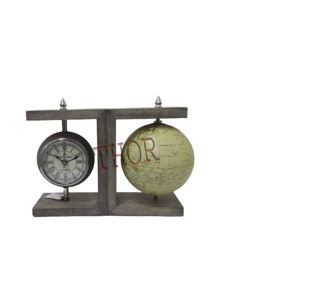 Sujetalibros de madera con diseño de reloj del Viejo Mundo, Mini Mapa pequeño, Base de madera, soporte decorativo para libro