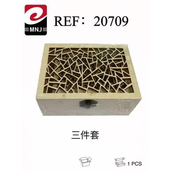 Juego de tres cajas de madera decorativas con diseño de rejilla geométrica para decoración del hogar