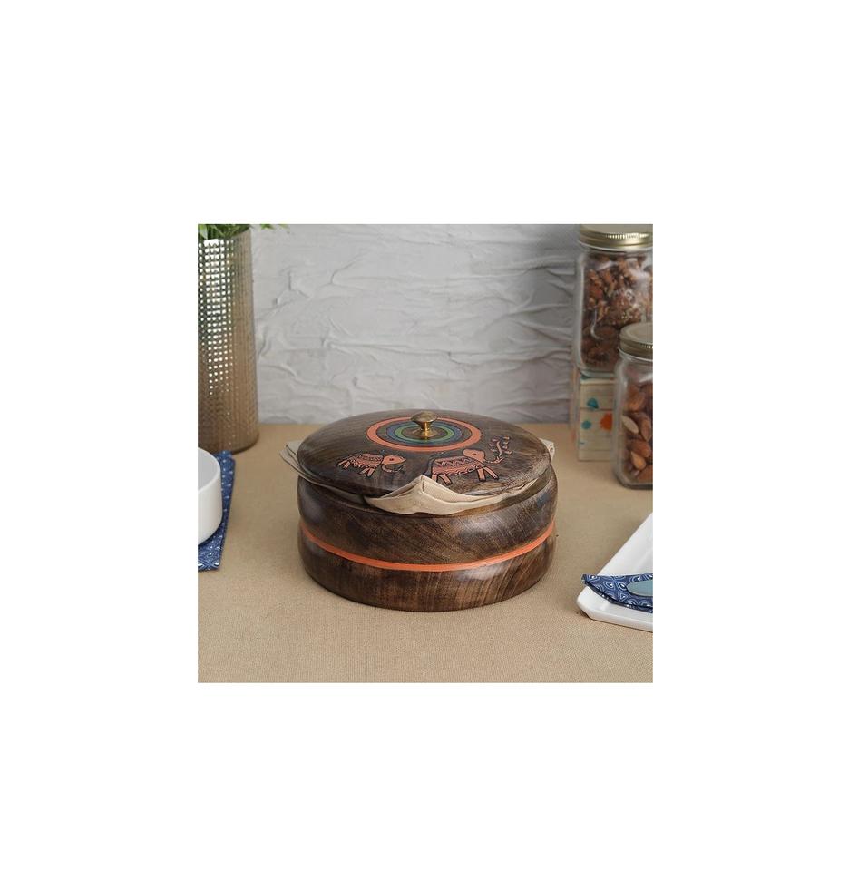 Cazuela de madera Chapati Box para cocina Hotpot Roti Box Cazuela para cocina Servir Cazuela Decoración con incrustaciones de latón
