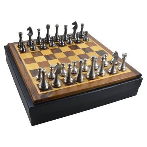 Juego de Ajedrez de Madera con Piezas de Metal, Juego de Ajedrez Portátil Hecho a Mano con Piezas de Juego