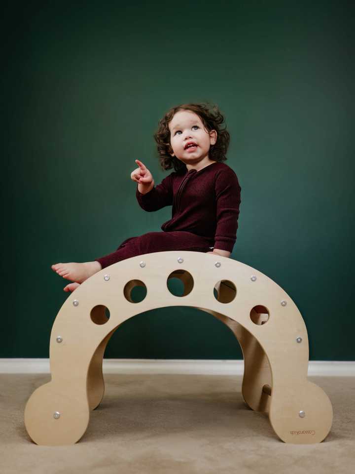 Arco de Escalada Triangular Montessori de Madera para Niños, Silla Mecedora, Arco de Escalada Interior Ecológico