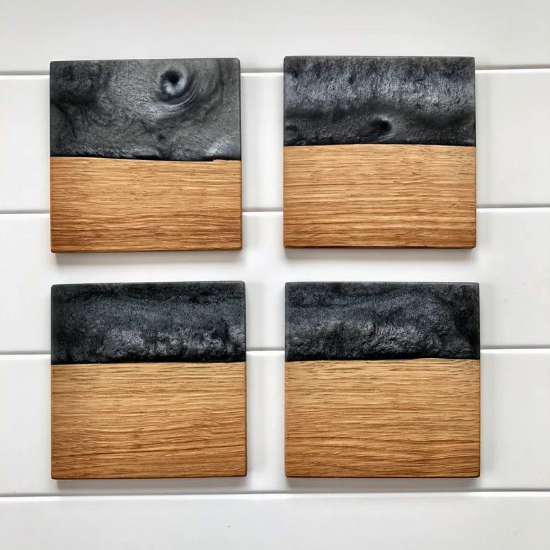 Juego de posavasos de madera, posavasos con incrustaciones de hueso, posavasos de diseño auténtico