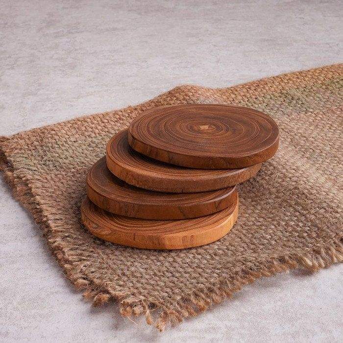 Juego de posavasos de madera con soporte para uso en la cocina, material duradero y ecológico para tazas de café, tazas de té y vasos.