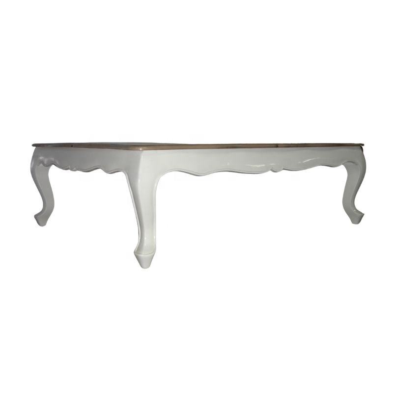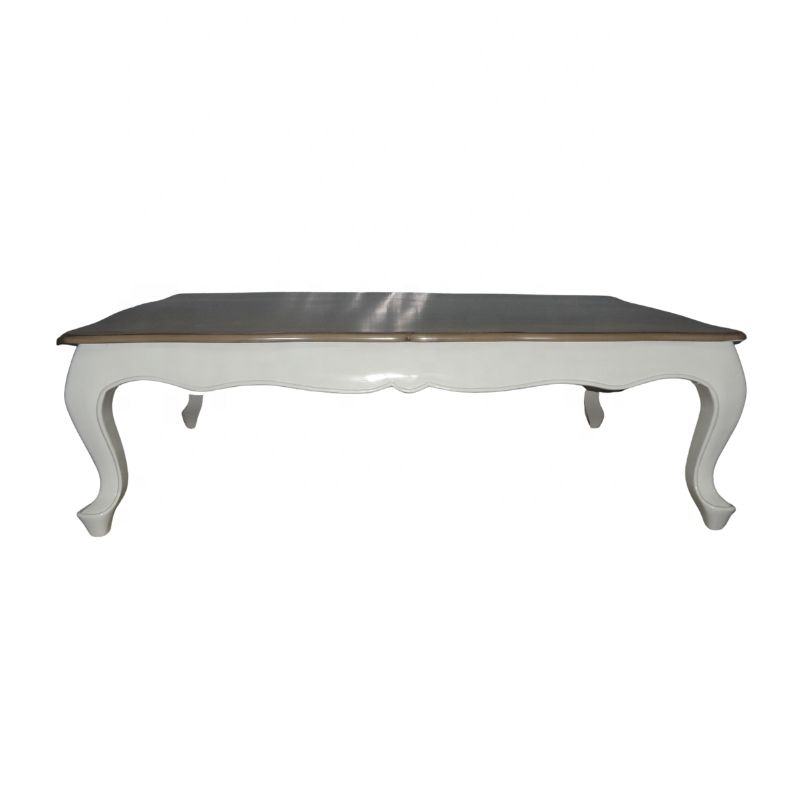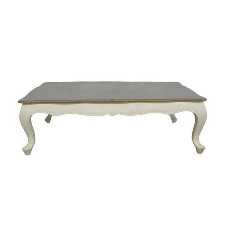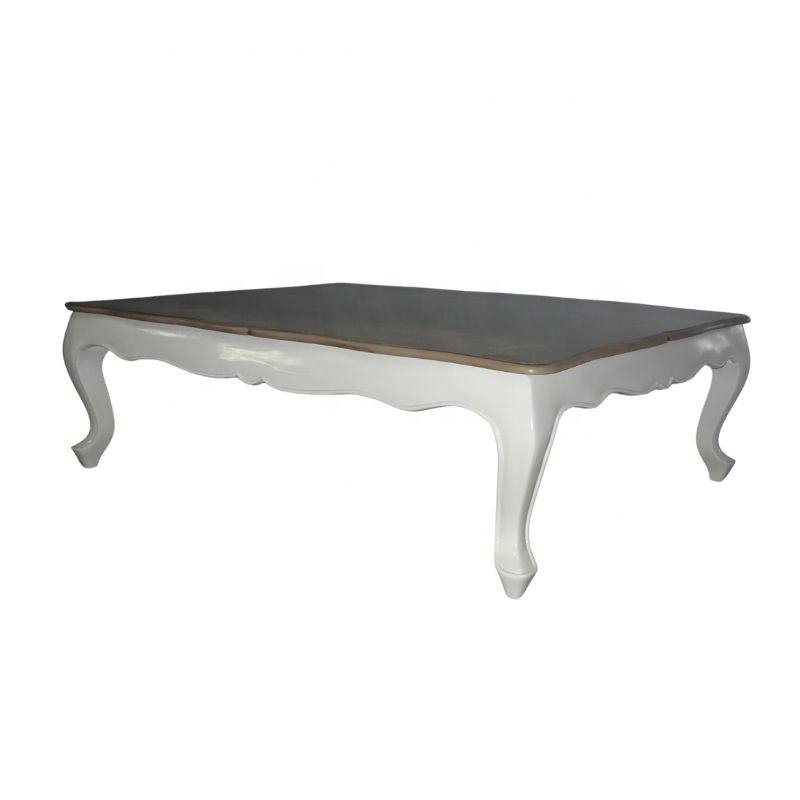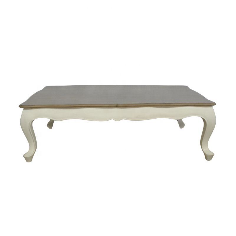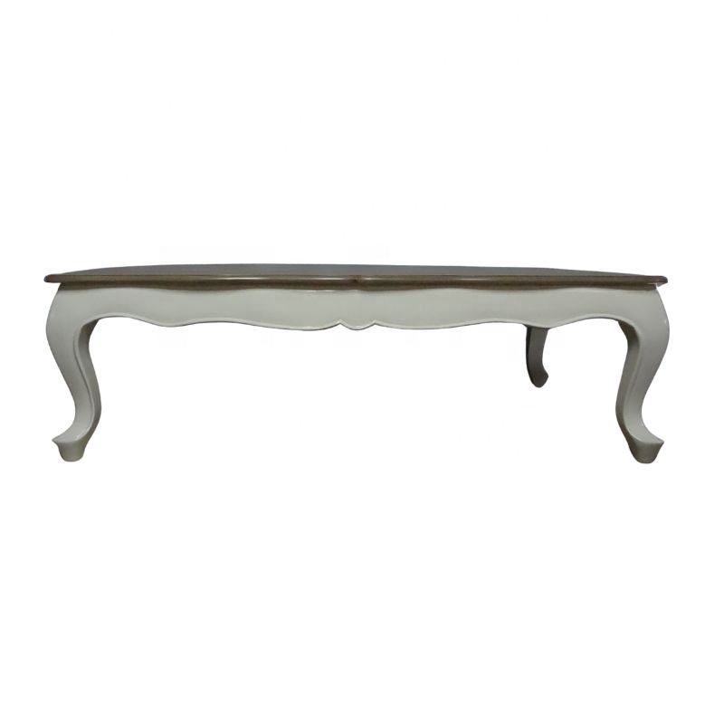 Mesa de Centro de Madera Blanca con Superficie Teñida, Mesa de Centro Antigua para Sala de Estar de Estilo Europeo