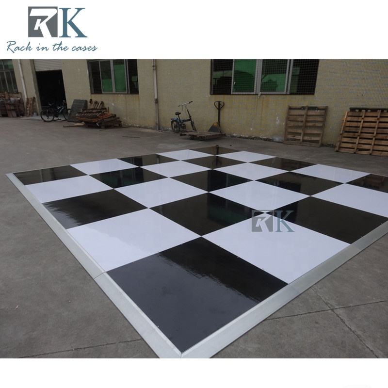 Nombre del producto:Piso de baile de madera portátil con carro blanco y negro Checker Floor