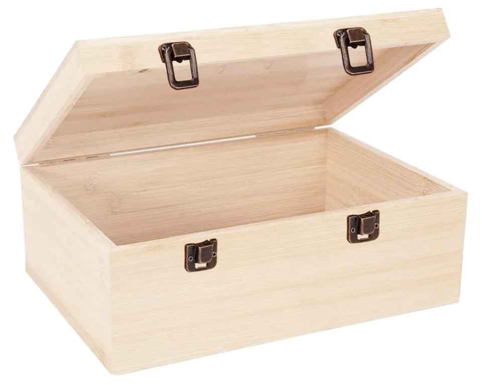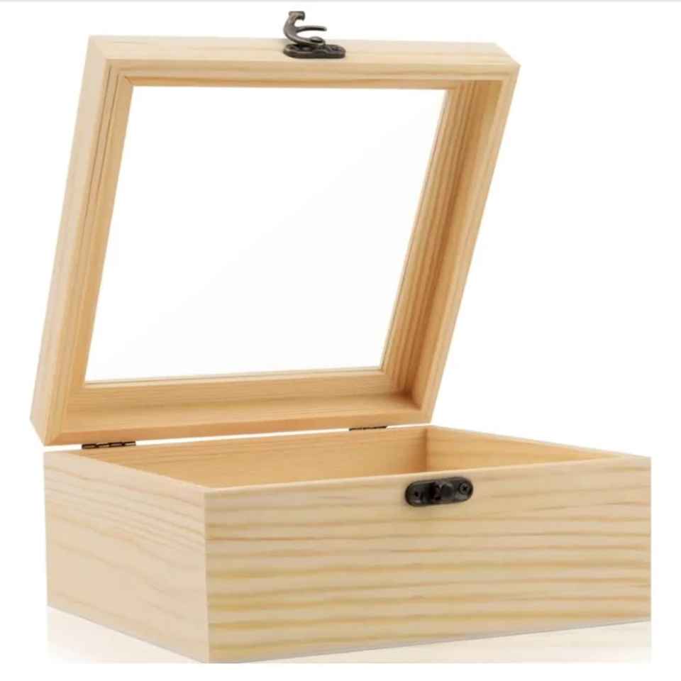 Caja de Almacenamiento de Madera con Tapa de Vidrio Transparente, Cierre Metálico con Bisagras, Acabado Natural Claro, Organizador para Joyas y Recuerdos