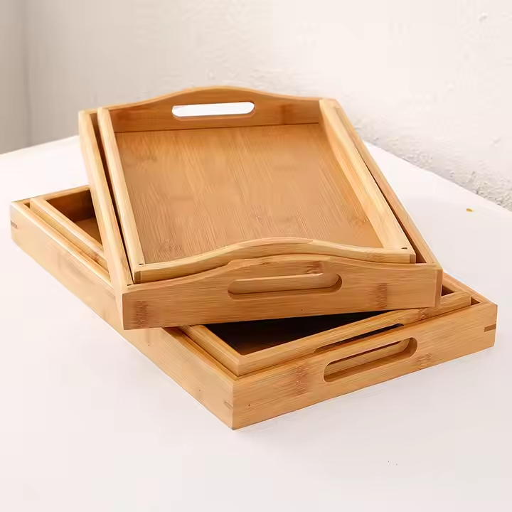 Bandeja rectangular desechable de madera hecha a mano por Crescent Crafts para té, agua y pan, bandeja comercial para servir