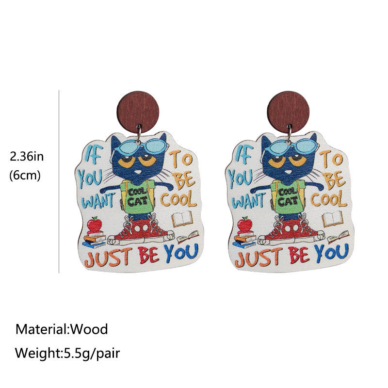 Pendientes de madera con letras coloridas, árbol de coco, gato, globo aerostático, Pendientes colgantes redondos para mujer Uionen 2310