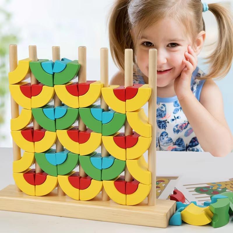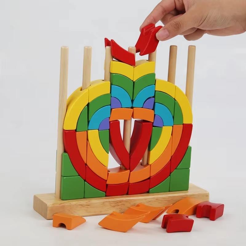 Bloques de Construcción Circulares de Madera Educativos, Juguetes de Anillos Circulares 3D, Juego Geométrico