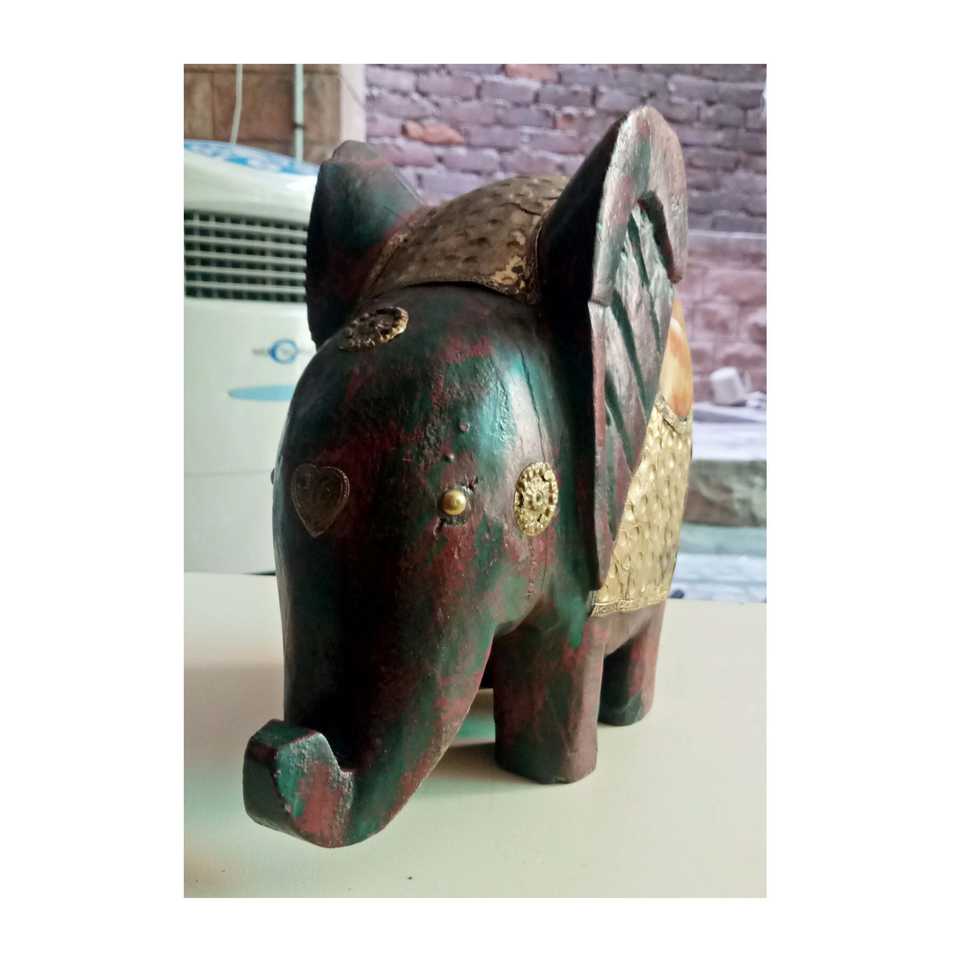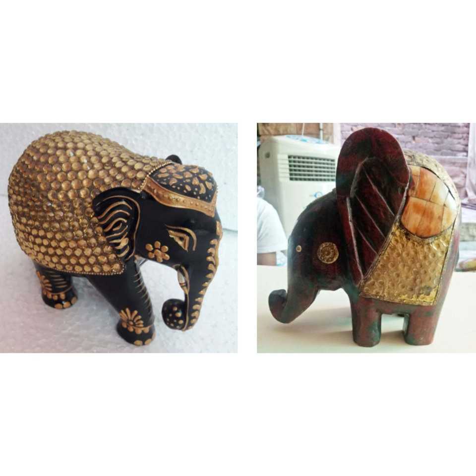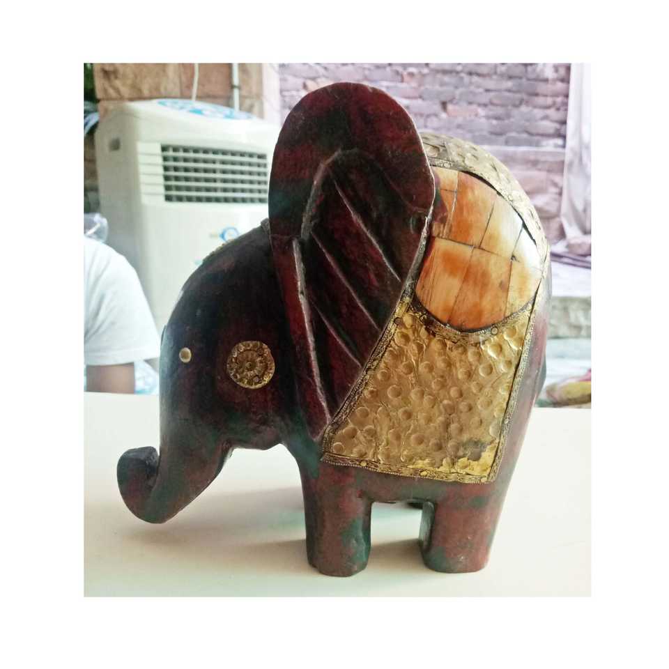 Escultura de elefante de madera pintada a mano modelo 1 con detalles en latón