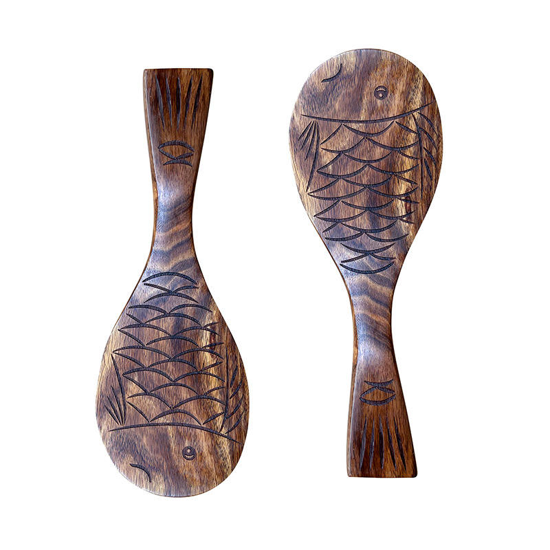 Cuchara de arroz de madera con forma de pez, espesa y duradera, espátula de cocina, utensilios de mesa para el hogar