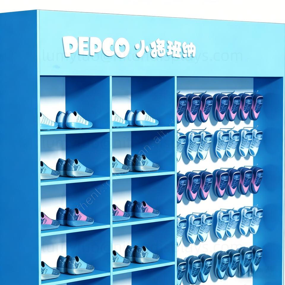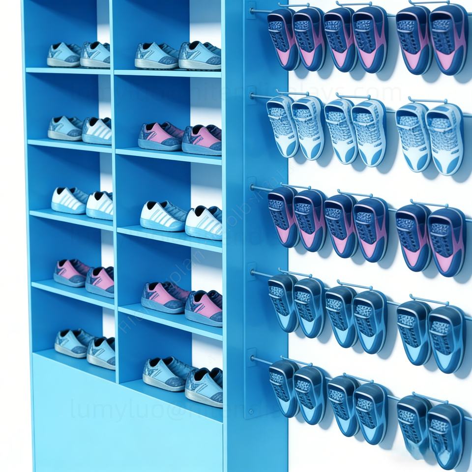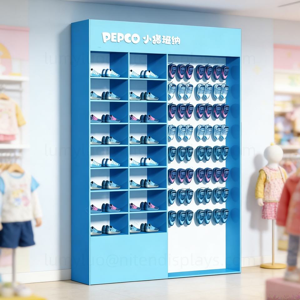 Estante de Madera Rústico con Ganchos, Soporte de Exhibición de Madera Maciza de Varios Niveles para Organizador de Tienda de Zapatos, Armario de Venta al por Menor de Ropa Infantil
