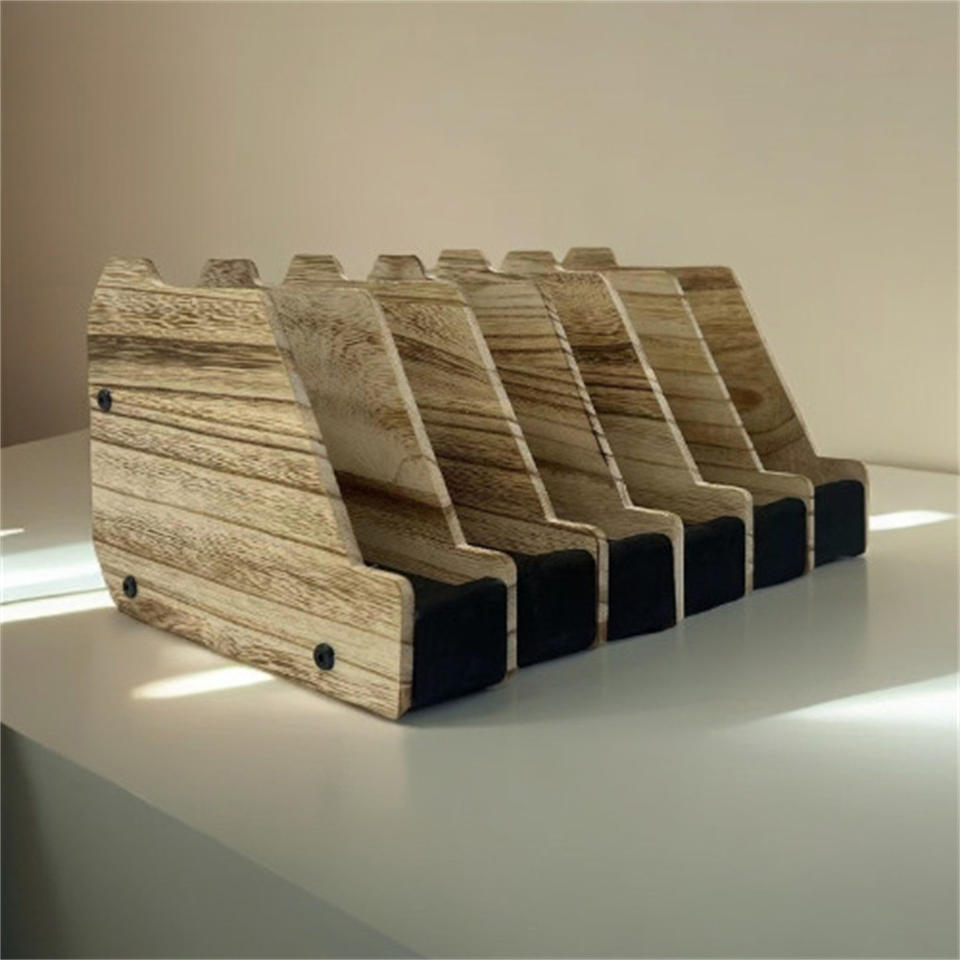 Estante de exhibición de pistolas de madera con 6 ranuras, organizador de pistolas de escritorio, estante de almacenamiento para coleccionistas de aficiones