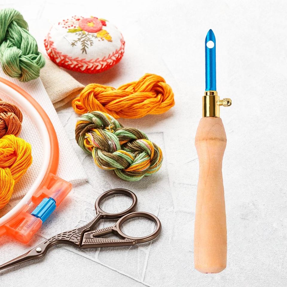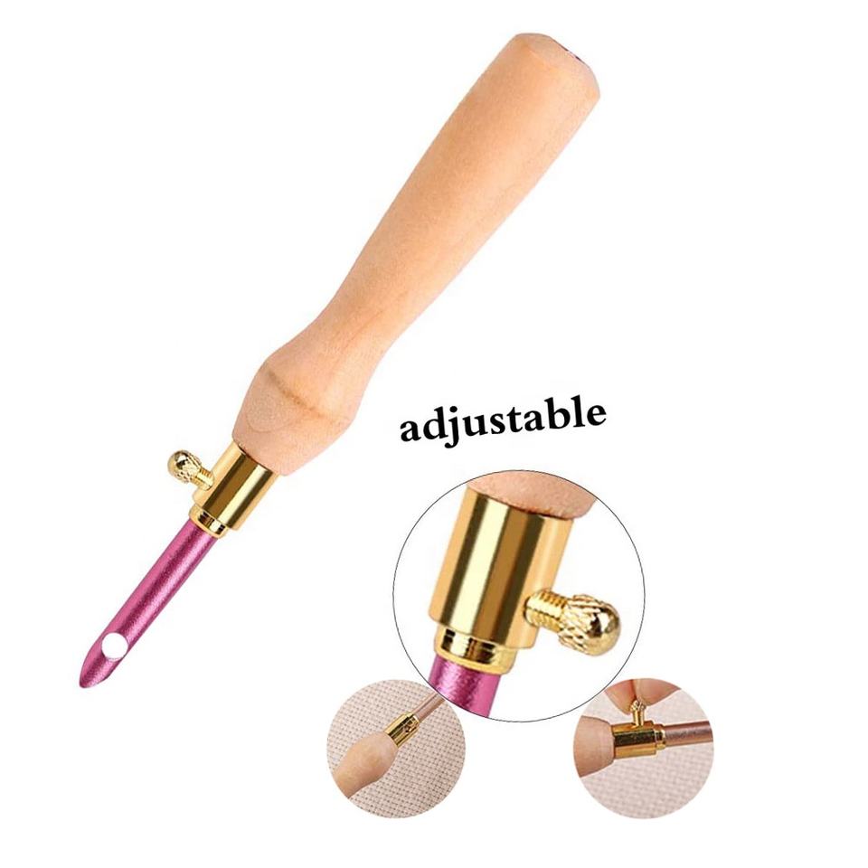 Pluma de bordado con mango de madera, agujas de perforación ajustables, herramientas de tejido para manualidades Diy