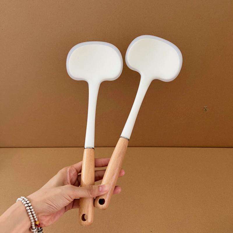 Espátula de Silicona con Mango de Madera, Cuchara Tipo Hongo, Apta para Alimentos, Resistente a Altas Temperaturas, para el Hogar