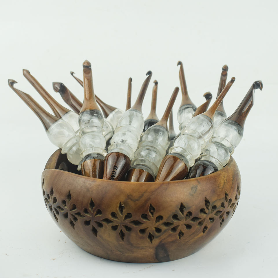 Nombre del producto:Juego de ganchos de ganchillo hechos a mano de madera de 15 con tazón de hilo de Sheesham