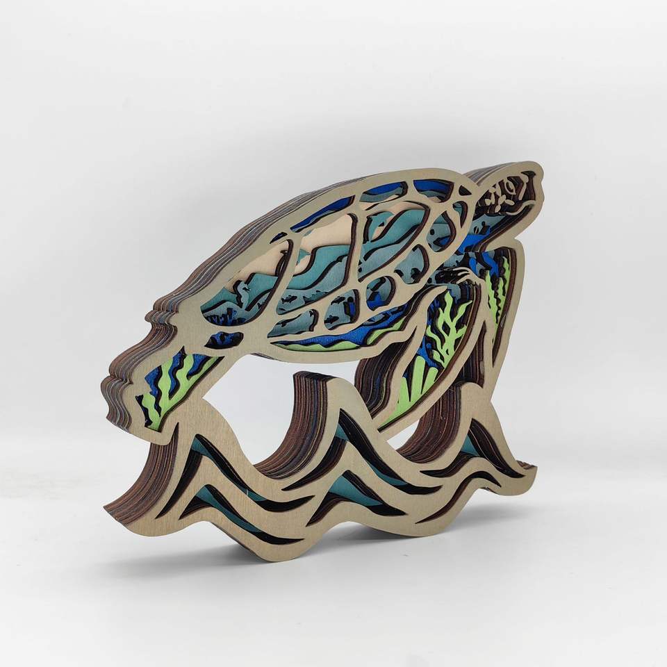 Madera hecha a mano grabado hexágono tortuga marina hueco multicapa tallado pared colgante decoración del hogar UIONEN 1608