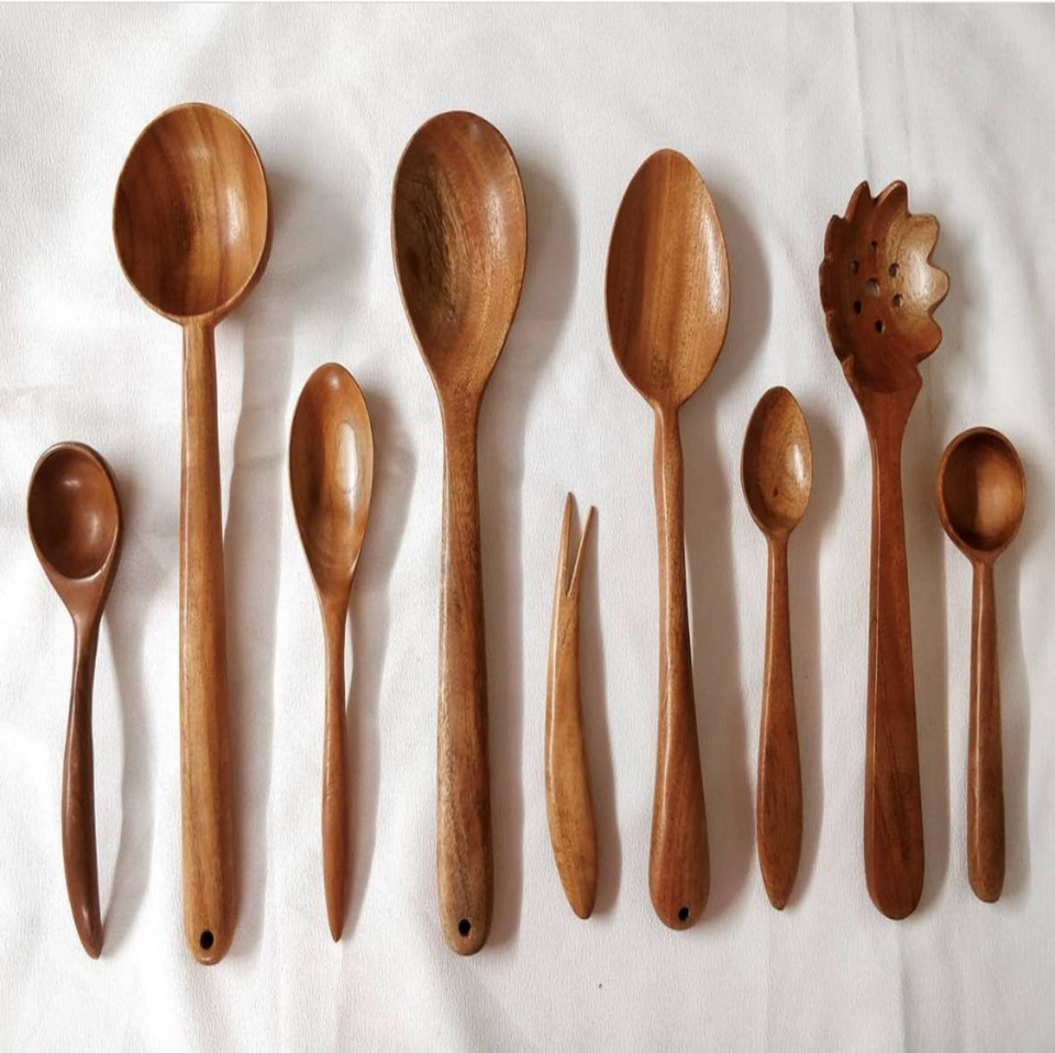 Juego de cucharas de té hechas a mano de madera con pulido de espejo para Decoración de cocina estilo indio de Crescent Crafts